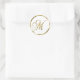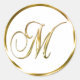 M Monogram Faux Gold Envelope Or Favor Seal. These classic round stickers are printed with non metallic ink on a flat sticker to look like gold. They are not beveled or embossed monograms but are designed to look like they are beveled or embossed monograms. These gold monogram seals are printed on a white background unless you select a different color background before you proceed to checkout. In addition to being pretty wedding stationery supplies, these elegant wedding invitation envelope seals also make great monogrammed custom Christmas card seals, personalized holiday greeting card envelope seal stickers and customized Xmas card monogram seal stickers.