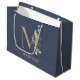Letter M monogram floral. Letter M in golden brown texture accented with green watercolor compound leaves, flower blossoms and melted gold droplets. Personalize with name in matching font.