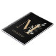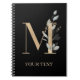 Letter M monogram floral. Letter M in golden brown texture accented with green watercolor compound leaves, flower blossoms and gold dust. Personalize with name in matching font.