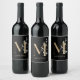 M Monogram Floral Personalized Wine Label