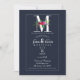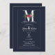 M Monogram Last Initial Modern Blue Floral Wedding Invitation