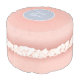 This sweet little cake design is a copy of a French 'macaron' with its light and airy top and bottom halves joined by a creamy filling. You can optionally customize the round label on top with your name, a monogram or initials, or with a word of your choice. This little patisserie favorite is in blush pink.