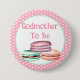 Pretty pink and mint green vintage style Macaron cookies themed girl's Baby Shower Godmother to be buttons with yummy watercolor illustration of a stack of macaron cookies. Mint green and white stripes.