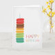 A cute birthday card - featuring a playful birthday cake made out of a stack of colorful macarons, with a "Happy Birthday" message to its side - placed against a crisp white background. A lovely birthday card that you can give to anybody on their birthday!