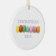 Lightweight, smooth, pure white ornament with nice sheen. Perfect size to be seen from across the room ... and to attract closer inspection! Price was great for ordering enough for the whole family! Clear, bold black design just as requested. Matches the order exactly. Just so nice!