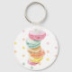 Illustration of a delicately balanced tower of pink, green, orange, brown and yellow macarons. A French specialty and a delicious card or gift for a special friend or anyone who love sweet things.