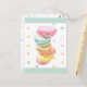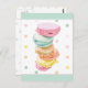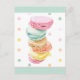 Illustration of a delicately balanced tower of pink, green, orange, brown and yellow macarons. A French specialty and a delicious card or gift for a special friend or anyone who love sweet things.