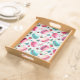 Serving tray with a watercolor pattern of sweet and delicious french macarons tumbling all around. Pretty watercolors - pink, red, and teal green. Random berries floating around too including strawberries, cherries and blueberries. Fresh and delicious. Set on a green polka dot background.