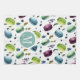 Elegant modern ming-green and mint-blue with purple macaroon and berries over white background. It is a seamless patter with changeable background color.