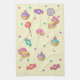 This whimsical kitchen towel will bring a smile to Mom's face while she's doing the dishes! The towel is a pretty lemon yellow and features colorful macaroons, cupcakes, lollipops, candy and donuts in turquoise, pink, yellow and purple. There are polka dots scattered about. There is also another kitchen towel, a pot holder and oven mitt set and an apron that coordinates in our shop too!