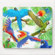 Original artwork by designer Carolyn McFann of colorful macaw parrots from hyacinth, blue & gold and hybrid macaws to military and scarlet on quality gifts, postage and cards.