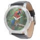 This beautiful watch features a colorful macaw parrot in a magical jungle.