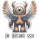 Whimsical one-eyed furry monster with wings who has an eye in the back of his head so he can see all.