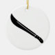 Lightweight, smooth, pure white ornament with nice sheen. Perfect size to be seen from across the room ... and to attract closer inspection! Price was great for ordering enough for the whole family! Clear, bold black design just as requested. Matches the order exactly. Just so nice!