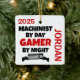 This ornament featuring the quote "Machinist by Day Gamer by Night" is perfect for any machinist that loves playing video games.