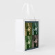 I own a lot of reusable grocery bags, but this one holds its box shape and simply stands up on its own even if there is nothing in it. Its stiffer than your regular reusable bag too, and the material is water resistant. I poured water on the exterior and it didn't penetrate inside to the other side. I'm buying a couple more. Wish I knew how durable these bags were or I would have purchased a few more with my initial order. I also like how it folds and buttons up when not in use, making it easy to put into a handbag or luggage. I haven't used this bag yet, as I purchased it for travel use, like when you're at the airport and need to small sturdy bag to place any airport purchases in, like food, souvenirs etc. I can tell you when you first see this bag, it looks very cheap, but after closer inspection of the material and the seams its a very sturdy reusable bag. I tested it out by putting some really heavy objects inside and I could not observe any stress to the bag at all. Another thing I like about it, is the fact the medium size that this is makes it easy to just carry it in your hand without the bottom of the bag scraping the ground, like most other bags do when you're short. That alone, deserves 5 stars. I just wish there were more colors to choose from! The PDX Airport Carpet printing looks just like the photo, and using this bag during travel might be a conversation piece when/if a native from Oregon happens to see it.