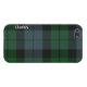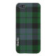 Stylish iPhone 5 case done in the blue and green MacKay Scottish tartan plaid pattern. White text running vertical down the left side, is ready to personalize for yourself or as a great gift idea. Handsome way to protect your iPhone yet stylish too.