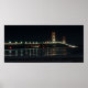Mackinac bridge winter night scene. Reflections shimmering on the ice