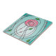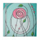 This design is inspired by the art nouveau style of Charles Rennie Mackintosh, finished with a stained glass effect. Lovely shades of blue-green, pink and leaf-greens.