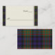 Stylish clan MacLellan tartan plaid wedding reception place card / escort card. A black edged cream text area, with colorful purple, black, red, green, and yellow plaid pattern, on both sides and covering the back of the card.. Personalize all the text to suit your needs, or delete it all. Matching wedding products available.