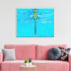 Macro Green Dragonfly on Blue Background Canvas Print