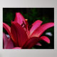 Lovely macro red lily with lingering raindrops floral poster print. Flower photography by Susan.