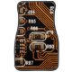 macro shot of circuitboard,cables,capacitors,card, car floor mat