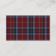 Lovely tartan plaid wedding reception place card / escort card, done in white, with a band of blue, red, and black clan MacTavish tartan plaid, at the bottom. Graphics of a decorative scalloped edge and a red stitching look, decorates the text area. Matching wedding products available.