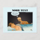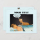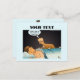 A card with a funny cartoon showing a cat being upset about having been castrated. Image, text and background can be personalized.