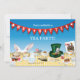 Things are getting curiouser and curiouser with this fun Mad Hatter Alice in Wonderland themed tea party invitation. A yellow gingham tablecloth is set with all the makings of the Mad Hatter's tea party with mismatched cups, the Mad Hatter's top hat, the "eat me" cake, the "drink me" bottle, among a multitude of elements borrowed from the classic tale. A red banner has the words "Mad Hatter" written on it above. Even the Queen of Hearts has stopped by to join the White Rabbit and the Dormouse. The reverse reveals the same scene after the tea party is over. All the cakes are gone and the teapot is empty. The Queen's court of playing cards rains down on the scene. Great for any Mad Hatter themed party whether it is a bridal shower, birthday party or just a fun get together. Available with matching products.