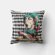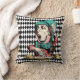 A pink and blue colored vintage Alice in Wonderland Mad Hatter at the tea party image on a black checkered background