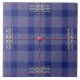 We call the original design by HomeWare on this 6” Ceramic Tile “Mad Plaid in Blue”. The pattern is a basic plaid in shades of heather blue. Over this background are two wavy red lines, one horizontal and one vertical, which cross through the center of the design. The lines are three dimensional, throwing shadows on the plaid, and there is a round red button in the center, where the lines intersect. Over the far ends of the red lines, on four sides, there are blocks of textured, wavy white lines. There are also red dotted lines running through the lighter blue part of the plaid. It looks a bit like a package, all sealed and taped. Thus the name "Mad Plaid in Blue".