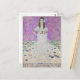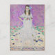 Famous Mada Primavesi portrait by Gustav Klimt. This painting features a girl in a white dress with flowers in front of a purple background. Lovely colors on this artwork.