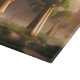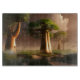 Beautiful and surreal fantasy art glass cutting board features "Madagascar Baobab Forest" with huge trees amid a morning mist