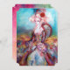 Elegant ,colorful ,classy and whimsical design in bright ,fuchsia, teal,turquase, white colors .Beautiful sophisticated whitish-blonde woman,blue,pink sparkling gold fabrics of a baroque costume with feathers and a red rose. Original watercolor and acrylic painting with golden foil and iridescent colors on canvas.This cool and artistic card is perfect for weddings,nuptial ceremonies,bridal showers,sweet 16,quinceanera birthday parties,costumed dance balls,,romantic engagements,save the date announcements, christmas,holiday office, family reunions,cocktails,new year's day eve celebrations,anniversaries,gatherings,concert,recital or just about any event you wish.