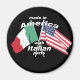 This design has the flag of the United States of America and the flag of Italy. White bold text reads: "Made in America with Italian Parts". Humorous design for any age!