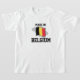 Nice shirt with the text: Made in Belgium as an image is the Belgian flag and is shown there behind the map of the country's shape. Colors: black, yellow and red.