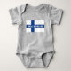 Made in Finland baby clothes for newborn child. Funny one piece bodysuit for new baby boy or girl. Finnish heritage design with national flag. Cute gift idea for new mommy and daddy.