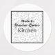 Introducing the "Made in [Your Name Here] Kitchen" cake pan lid, adorned with a charming black and white illustration of essential baking tools, adding a touch of personal flair to your culinary creations. Elevate your baking experience with this unique and stylish lid, proudly crafted in your kitchen. This makes the perfect gift for the cook you love.
