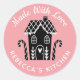 A personalized "made with love" sticker featuring a cute little gingerbread house with a heart and the words, made with love on a pink colored background. Personalize it by adding your own name. A pretty finishing touch for all of your homemade gifts. Designed for you by Blackberry Boulevard.