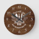 Clock is well-made, nice size, and easy to hang! Good quality! The printing is beautiful and the colors and art are better than in the picture! The artist recreated nature's beauty and seventy with this handsome buck and then set it against a backdrop of (again) the serene colors of nature! Was fun to personalize with a name!