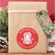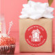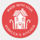 A personalized "made with love" sticker featuring a cute white gingerbread house with a heart and the words, made with love on a red colored background. Personalize it by adding your own name. A pretty finishing touch for all of your homemade gifts. Designed for you by Blackberry Boulevard.
