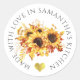 Made with love food label sticker with your name and a lush bold sunflower and gold foil heart. Make your home baked goods or commercial baked goods look inviting with a pretty label and your name.