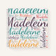 Madeleine. Show and wear this popular beautiful female first name designed as colorful wordcloud made of horizontal and vertical cursive hand lettering typography in different sizes and adorable fresh colors. Wear your positive american name or show the world whom you love or adore. Merch with this soft text artwork is a great present, not only in womens history month, or birthday gift.