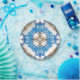 A blue, green and yellow arabesque pattern like seen on mediterranean tiles