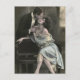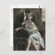 Vintage colorized photograph of a young woman sitting cross legged and twisting with her head up to kiss the young man holding her hand and leaning down