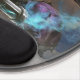The plastic backing is nice and sturdy. The grippy pads underneath keep the mouse pad where I put it on my table. The pad the mouse sits on is cut well to fit the backing. The wrist pad is perfectly soft, supportive, and thick. I'm left-handed, and this mouse pad works just as well for me as it does for my right-handed friends. I'm the designer of HippieClecticHope products. I'm blown away by how well my intricate fractals turn out on the tangible items in the Zazzle Marketplace. This particular mouse pad ***appears*** like a 3D object... A mathematically-engineered rainbow black opal, inlaid under transparent fabric...
