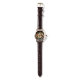 Has heft and feel of expensive stainless steel quartz watches. Good band with safety catch. I removed links, which is easy because engraved arrows show direction to push the linking pins. As always by this seller, the image (a railroad logo) is a perfect reproduction of my emailed image, and is precisely spaced and aligned.