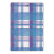 Cool Blue and Purple Checkered Madras makes a fashion statement with our signature dry brush textures and colors in an overlapping pattern of soft violet and cyan blue horizontal and vertical stripes and bands of various widths. Our unique design is great for picnics and color coordinating your home, nursery, or office. Custom designs available.