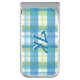 Madras Plaid Green and Blue Silver Finish Money Clip